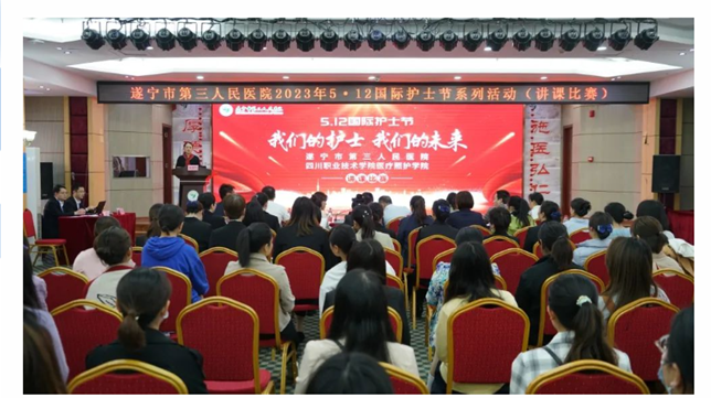 为深入学习贯彻党的二十大精神,贯彻落实习近平总书记关于教育的重要论述,坚定不移走内涵式发展道路,加快形成高水平人才培养体系。以赛促”联“,以赛促教,以赛促进,不断提升我院教师教学技能水平。4月25日。医疗照护学院携手学校直属附属医院-遂宁市第三人民医院举办“竞技能 展风采”教师教学技能大赛,共同庆祝“5·12”国际护士节。