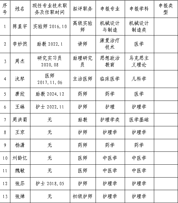 根据《四川职业技术学院专业技术职务评聘管理办法》(川职院〔2025〕67号)及《卫生健康学院职称申报基层推荐组推荐办法》要求,经学院职称申报基层推荐组审核、评议,确定以下老师为2025年度职称申报推荐人选。