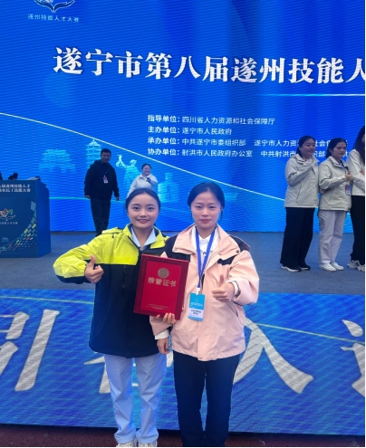 近日,遂宁市第八届遂州技能人才暨第十二届农民工技能大赛在射洪市落幕。我院智慧健康养老服务与管理专业学子钟元琴,在阳婷老师指导下,凭借扎实理论与娴熟实操,在重点赛项“养老护理”中脱颖而出,最终斩获二等奖,为院校赢得荣誉。